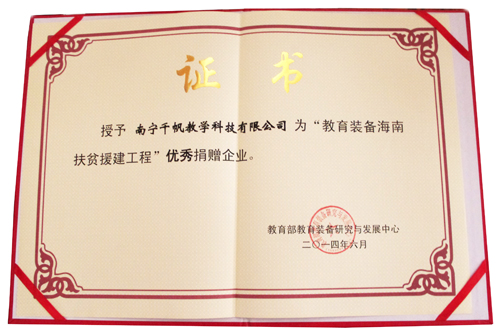 南寧千帆攜“千帆”中小學(xué)系列教學(xué)產(chǎn)品參與本次活動,并榮獲“優(yōu)秀捐贈企業(yè)”稱號。在整個活動過程中我們的產(chǎn)品及企業(yè)均得到教育裝備部門及學(xué)校老師的認可。這個榮譽給予我們更多的信心,我們將以更優(yōu)質(zhì)的產(chǎn)品及服務(wù)來回饋社會。
