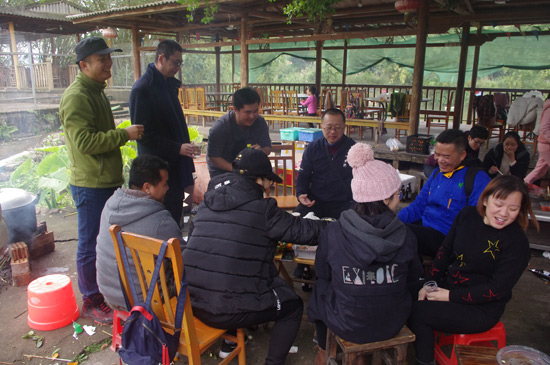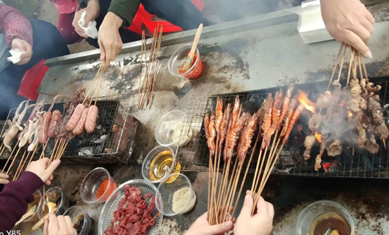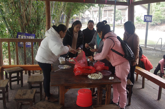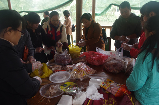 10:30分,我們正式抵達(dá)目的地“竹泉島山莊”,大家紛紛參與到午餐的準(zhǔn)備活動(dòng)中,生火、穿菜、刷油、配料、烤串……,大家紛紛施展各自拿手絕活,忙得不亦樂乎,不一會(huì)大家親手烤制的肉串就飄出陣陣誘人的香氣。太陽(yáng)很應(yīng)景在此刻從云層中鉆出,金色的光芒透過樹蔭照在每個(gè)朝氣蓬勃的笑臉上。