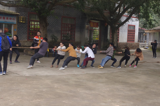 在這松林翠柏,湖光蕩漾的優(yōu)美自然風(fēng)光中,大家敞開心扉,真誠(chéng)交流,杯觥交錯(cuò),舉杯暢飲,友誼的花朵在靜靜的盛開,一片其樂融融的景象。飽餐之后,大家分組進(jìn)行了拔河比賽,加油聲、吶喊聲、歡笑聲接連不斷,大家共同出謀劃策、研究戰(zhàn)術(shù)、齊心協(xié)力,為團(tuán)隊(duì)的榮譽(yù)勇爭(zhēng)第一。